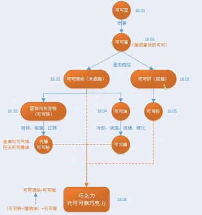 既然提到了可可粉那咱們還是看一下巧克力的加工流程圖吧,這樣比較直觀。