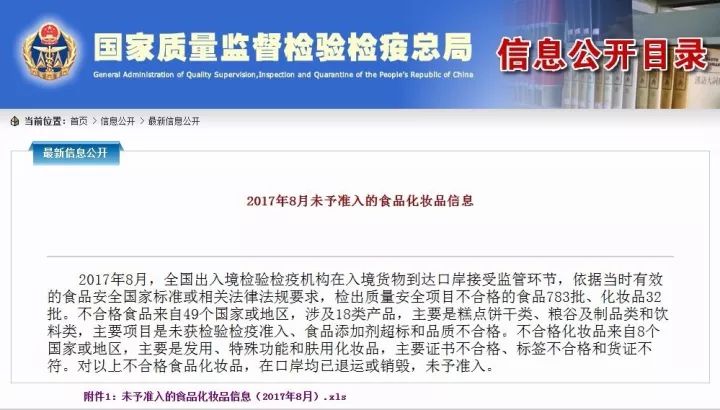 博裕食品進口報關行獲悉,近日,國家質量監督檢驗檢疫總局官網公布了《8月未予準入的食品化妝品信息》名單,其中包括質量安全項目不合格的食品783批、化妝品32批。